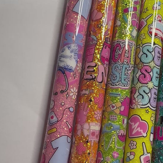 **** pens are sealed with Epoxy resin so vinyl/glitter doesn’t lift. I do try my very best to get these pens as smooth as possible I am only human so imperfections like bumps or wondering glitter may be noticeable to the touch but the pen still work and still are cute