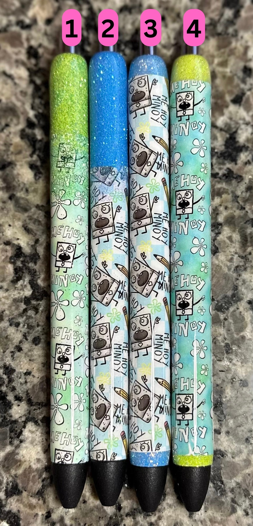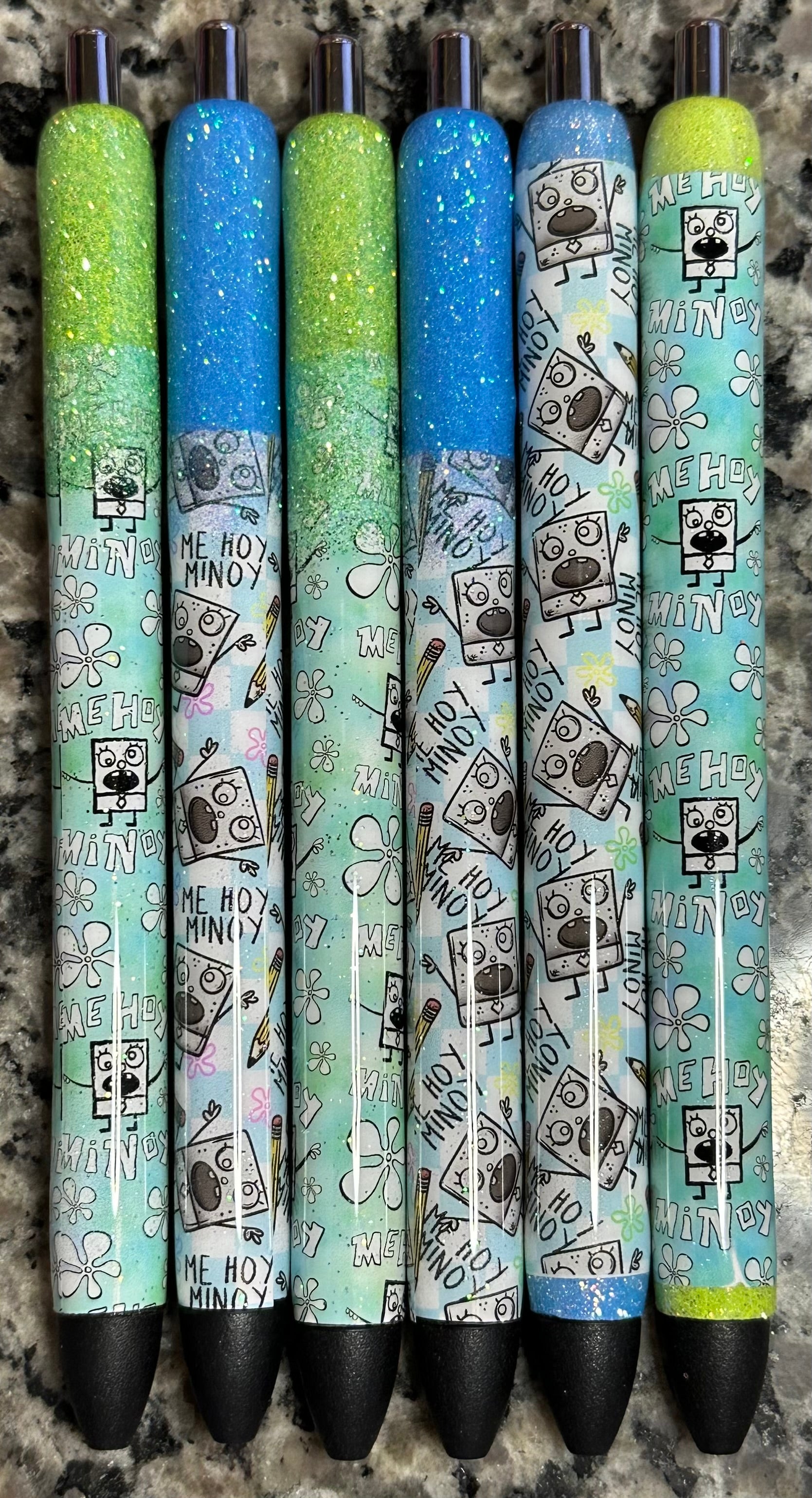 **** pens are sealed with Epoxy resin so vinyl/glitter doesn’t lift. I do try my very best to get these pens as smooth as possible I am only human so imperfections like bumps or wondering glitter may be noticeable to the touch but the pen still work and still are cute